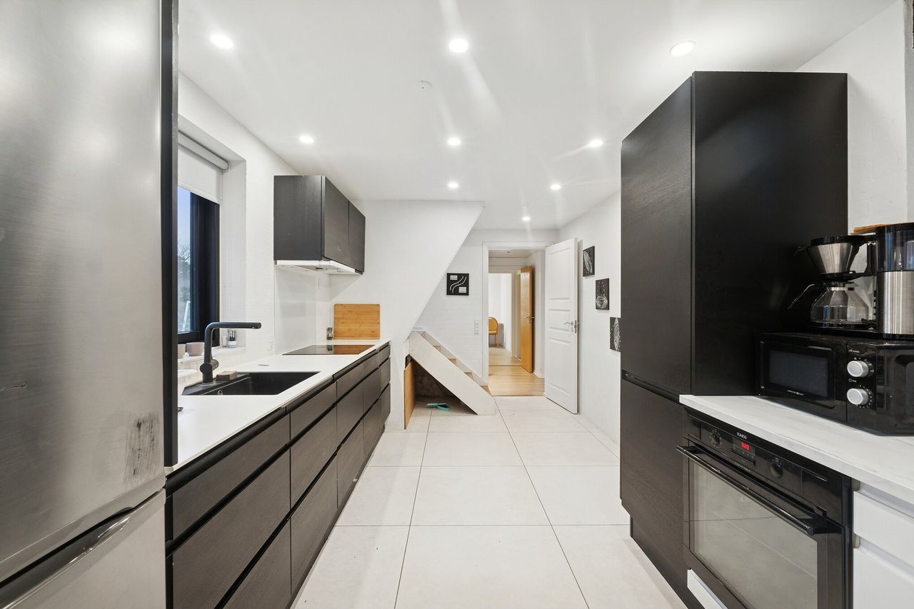 I stueplan finder du en skøn stue, der er perfekt integreret med køkken/alrummet, hvilket skaber et åbent og indbydende miljø for både hverdagens aktiviteter og festlige sammenkomster. Her kan familien samles omkring brændeovnen på de kolde vinteraftener eller nyde måltider i det lyse alrum. De fire gode værelser giver masser af plads til hele familien eller gæster, mens to moderne badeværelser samt et praktisk gæstetoilet sikrer bekvemmelighed for alle.